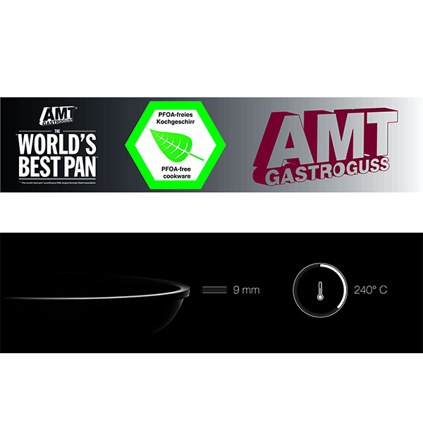 Универсалният тиган е направен от висококачествени материали. Специалното дебело 9 мм. дъно и патентованото покритие Lotan®  Ви обещават винаги отлични резултати. Дръжката от термоустойчив бакелит дава възможност да го използвате и вместо тава във фурната. Всяка домакиня ще хареса мултифункционалността на дълбоките тигани на АМТ - можеш да приготвяш ястия и на котлона, и във фурната. Това означава, че готвиш в един съд всякакви ястия: супи, сосове, печива и дори превъзходни, сладки десерти!