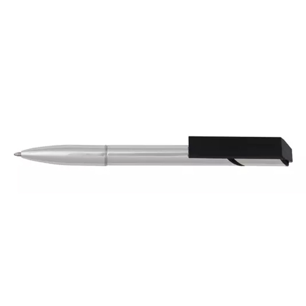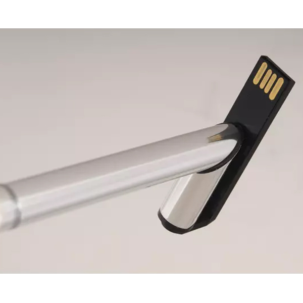 Стилна метална химикалка с вградена преносима памет 32 GB без кутия. USB-то е скрито под клипа и се показва чрез завъртане на горната част. Тялото на химикалката е подходящо за лазерно гравиране, а върху клипа може да се брандира с цветен печат.