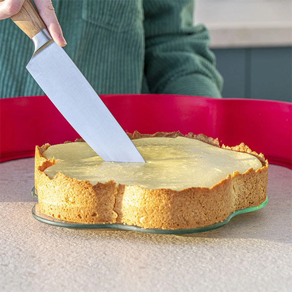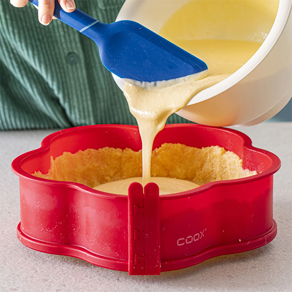 Формата цвете на COOX е със стъклена основа е удобна, красива и нестандартна. Можете да печете и режете директно върху основата, която е и чиния за сервиране, т.е не трябва да местите тортата след изпичане. Почистването е лесно и пести много място във вашата кухня. Практичните крачета под стъклената основа осигуряват лесно боравене и придават завършеност.