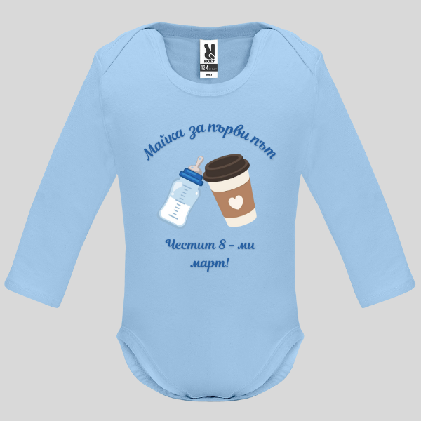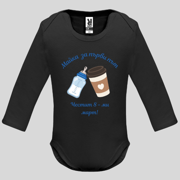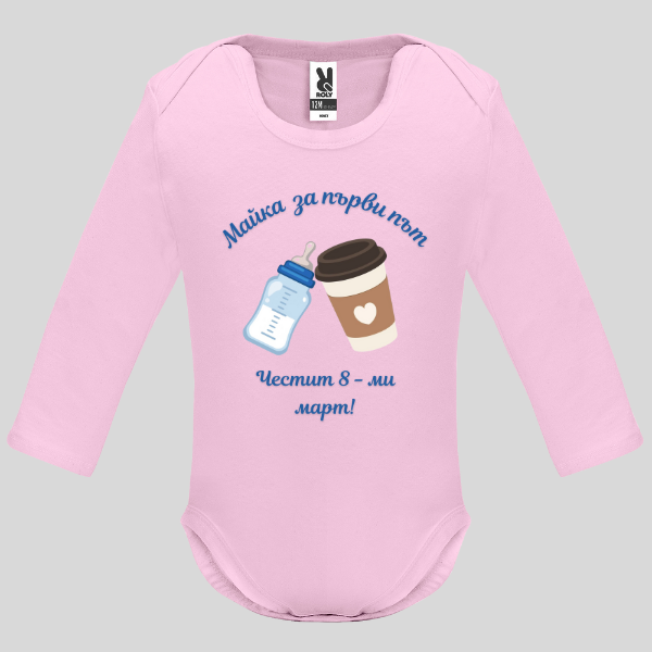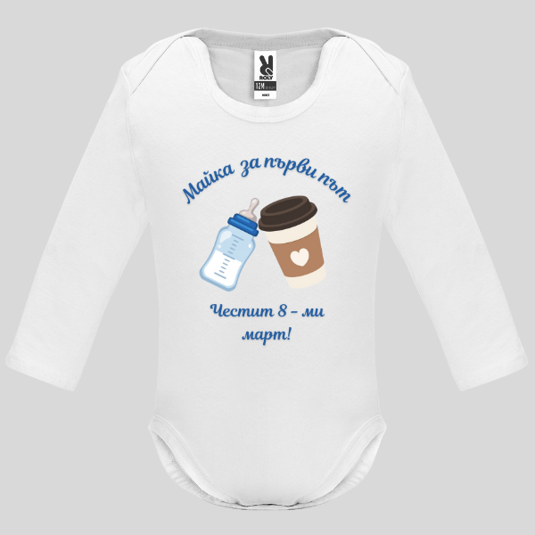 - Бебешко боди с дълъг ръкав „Майка за първи път.Честит 8-ми март!“