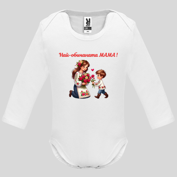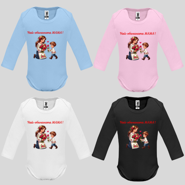 - Бебешко боди с дълъг ръкав „Най- обичаната МАМА!“