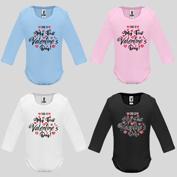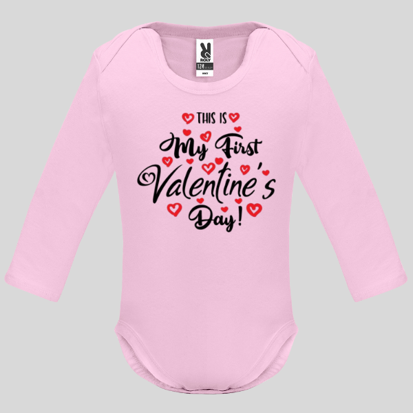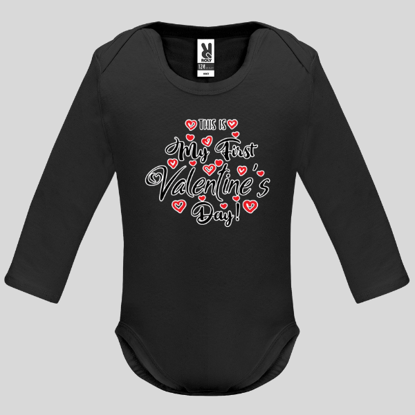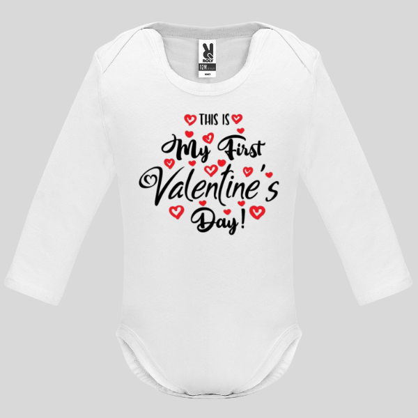 - Бебешко боди с дълъг ръкав „This is my first Valentine`s day!“
