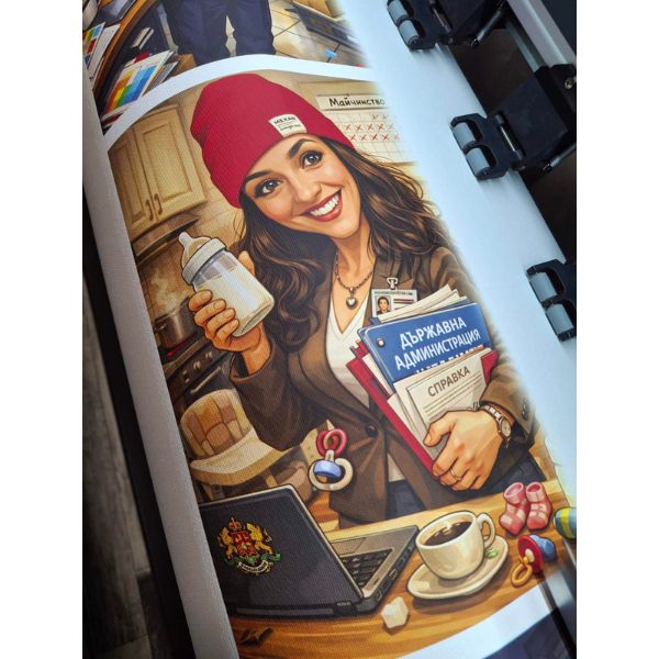 - Този продукт включва печат на ВАША карикатура върху канаваца.