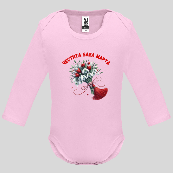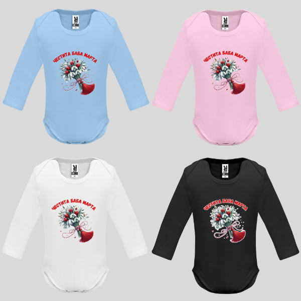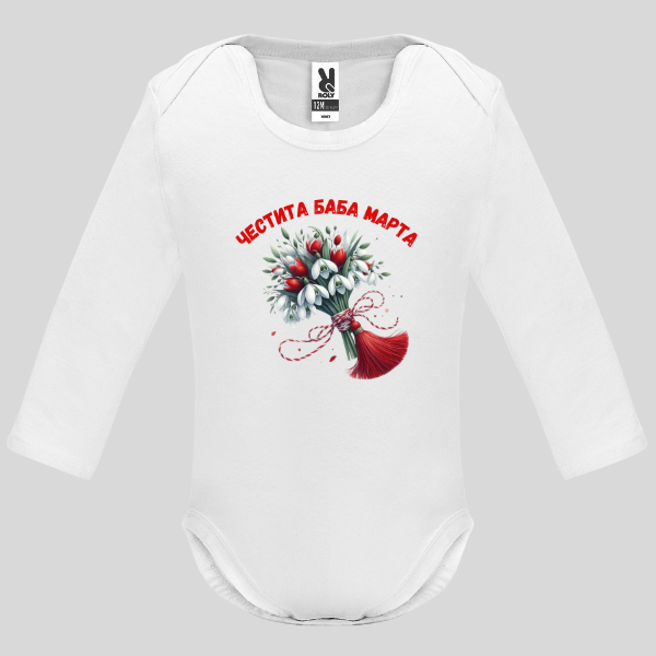 - Бебешко боди с дълъг ръкав „Честита Баба Марта“