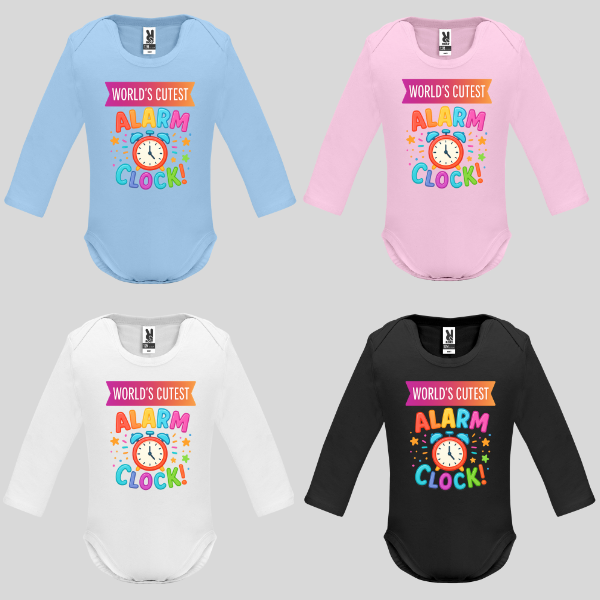 - Бебешко боди с дълъг ръкав „Alarm Clock“