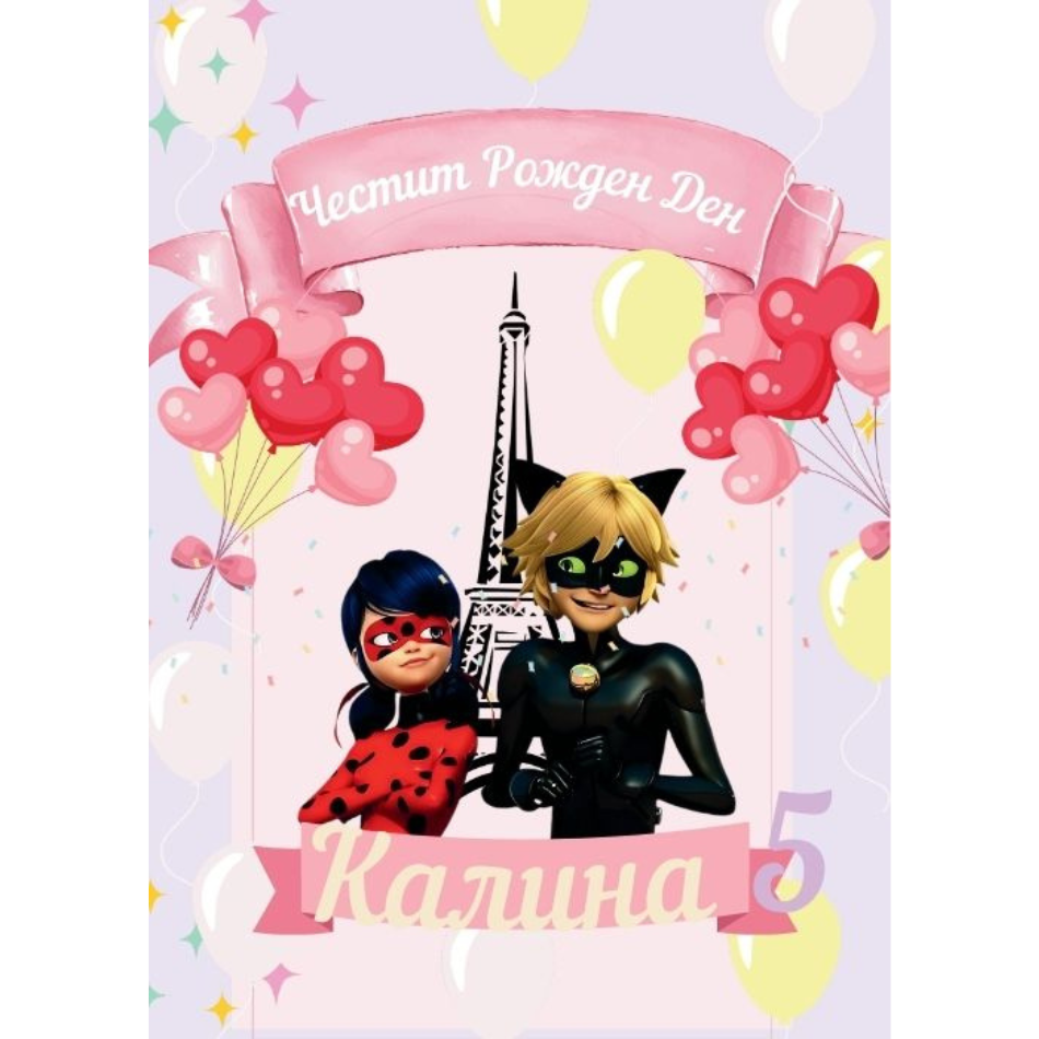 • Плакат за рожден ден - Калинката и Черния котарак