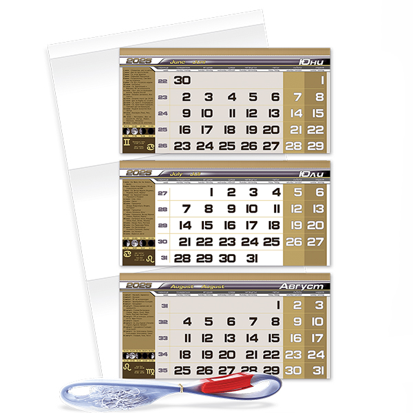 - 3 календарни тетрадки с иглена перфорация и сребърна/златна самозалепна лента (шапка)