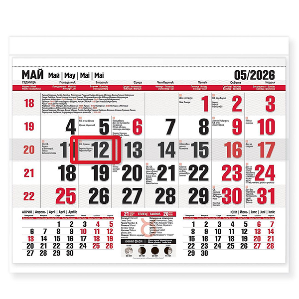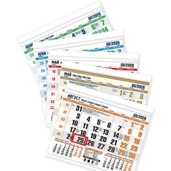Едносекционните календари от офсетовата серия - Office Small притежават подходящ размер за цифров печат и на подложката. Календарът е подходящ за по-малки офиси и бюджети