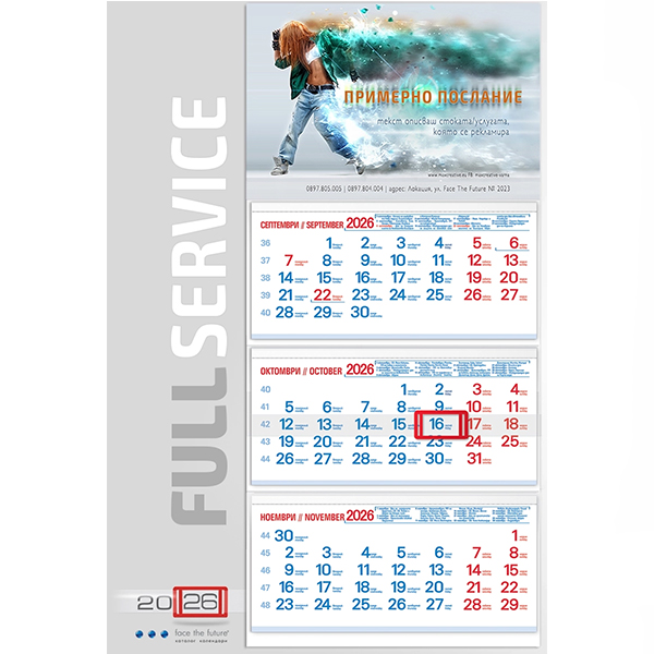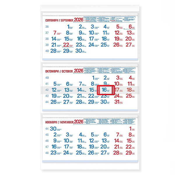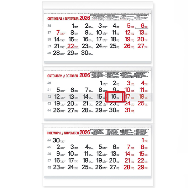 Насипен календар - календарни тетрадки, указателно прозорче и картонена подложка