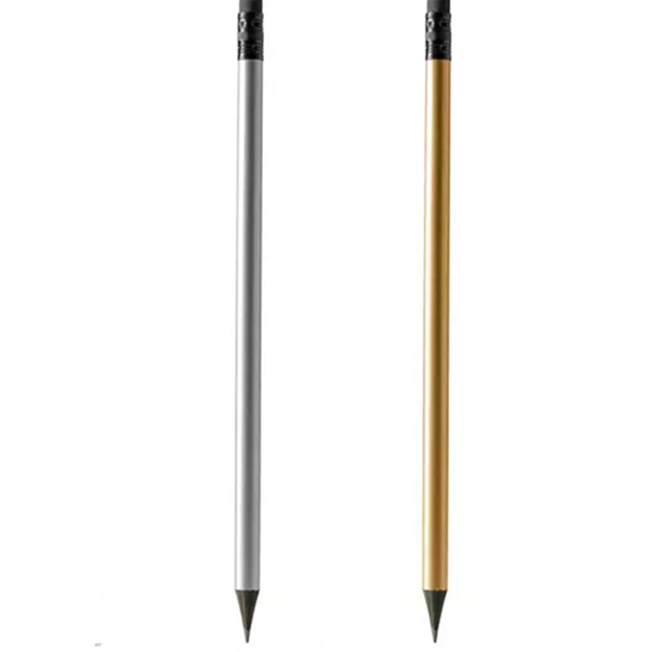 Черен дървен молив със сатенено покритие с черна гумичка и предварително подострен връх.