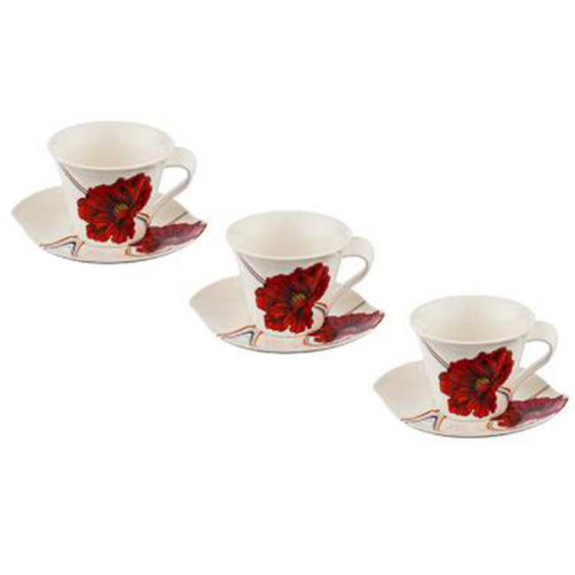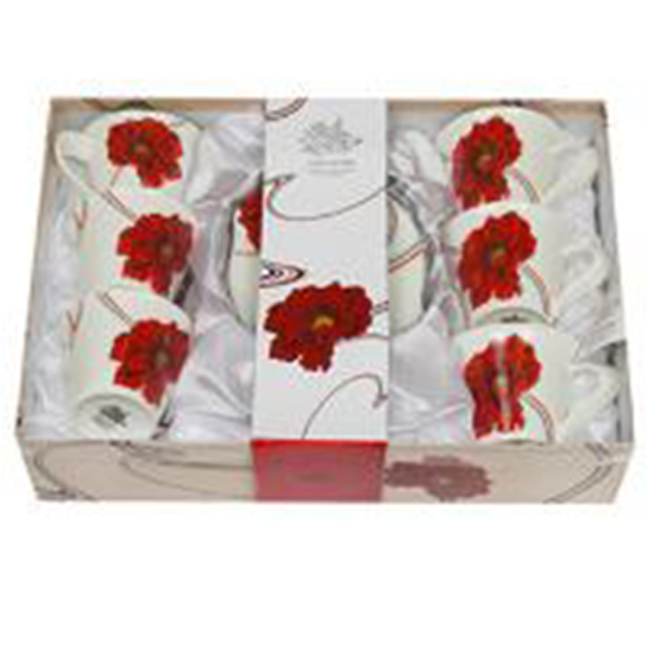 - Луксозен комплект от 6 чаши и чинийки - Макове