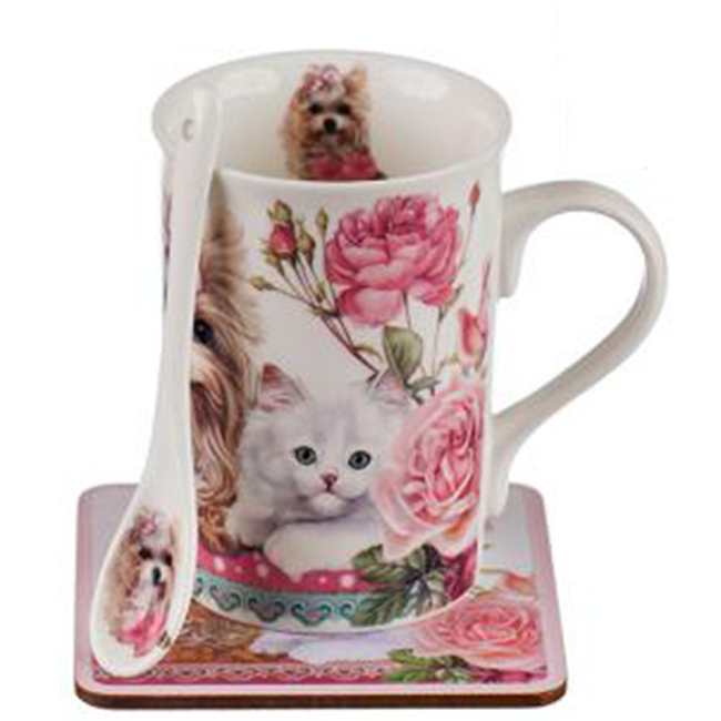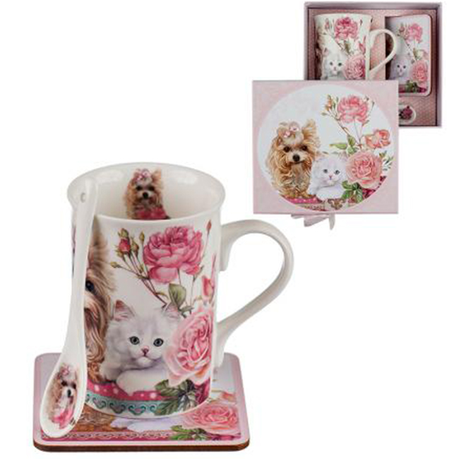 • Комплект чаша с лъжичка и подложка