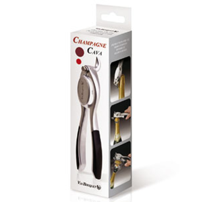 Този елегантен тирбушон ще ви помогне да отворите бутилки шампанско, пенливо вино или сайдер. Лесен за използване, той има кука за отстраняване на телената клетка и отваря бутилката с едно завъртане.