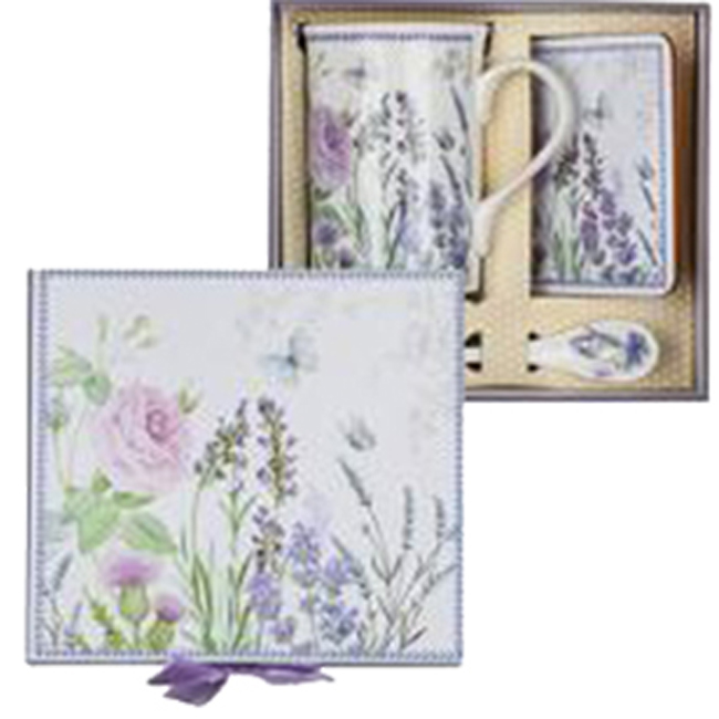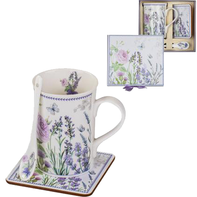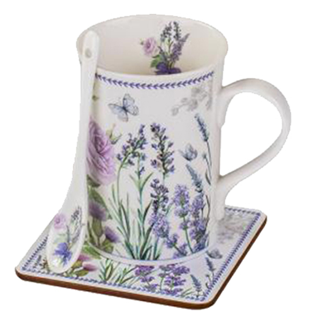 - Комплект чаша с лъжичка и подложка - Лавандула