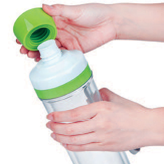 - Бутилката има вътрешен стъклен контейнер и пластмасова външна част за съхранение на топли и студени напитки