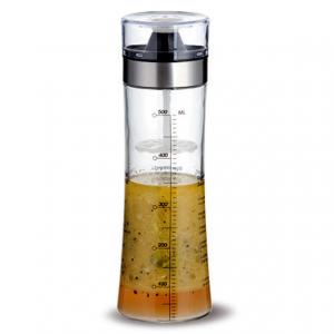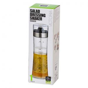 - Капачката е със стоманено окантване и специално разработен неразливен чучур. Пластмасовата бъркалка се отстранява и почиства лесно. Стъклото е екологично и хигиенично. Върху него са отпечатани 3 рецепти за салатен дресинг.