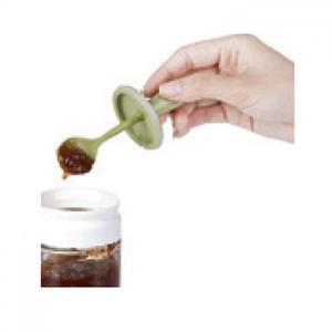 - Лъжичката е вградена в капачето, то е окантено със силиконов пръстен, осигуряващ херметически плътното му затваряне