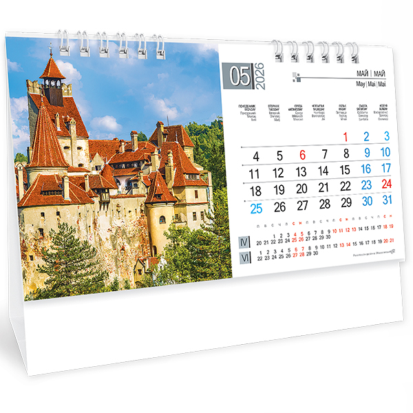 Календар пирамидка TRAVEL - Цветни месеци - 7 листов, настолен работен календар - 2026г