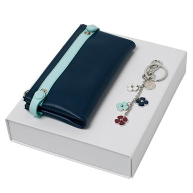 Луксозен комплект, включващ дамски портфейл и ключодържател - Tourbillon Blue