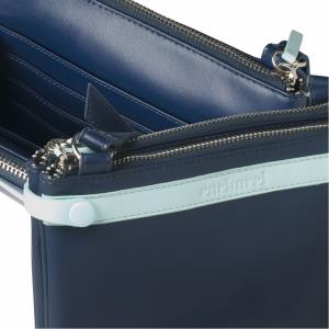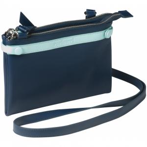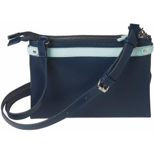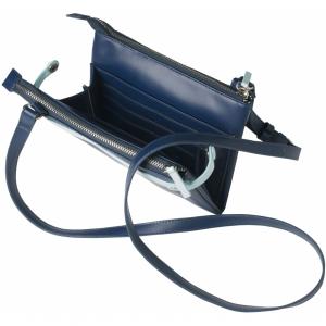 - Елегантна малка чанта с регулируема дръжка, две отделения с цип и място за карти и визитки
