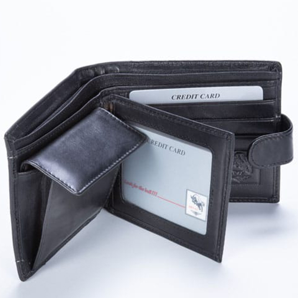 Мъжки портфейл с две прегради за банкноти и една с цип, с вътрешен монетник