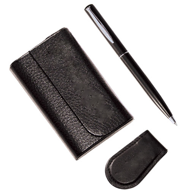 • Комплект химикалка, визитник и щипка за пари в кутия.