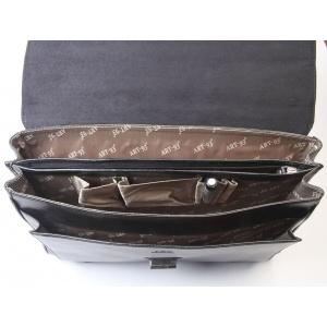 Мъжка бизнес чанта с три удобни и практични отделения за документи и лаптоп, между тях джоб с цип. Удобни къса и подвижна регулируема дълга дръжка. Един голям хоризонтален външен джоб отпред и един отзад. Метална закопчалка с код.
