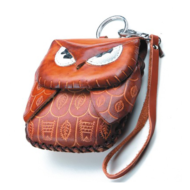 Портмоне, ръчна изработка от естествена кожа, с форма на бухал с цип.