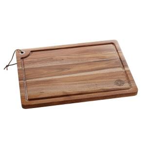 Дъската е направена от акациево дърво, има улей за събиране на течност ,сок или мазнина. С помощта на халка от неръждаема стомана можете да закачите, където решите. А когато нямате какво да режете на нея, можете да я използвате за поднасяне на вкусни сирена или хапки.