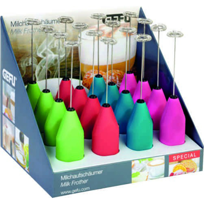 Миксерът работи със скорост от 12 000 оборота в минута, захранван с 2бр АА батерии (вкл). Меката повърхност осигурява удобна работа. Изработен от неръждаема стомана и ABS пластмаса.