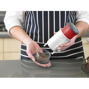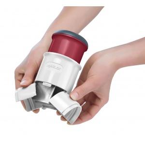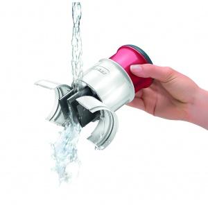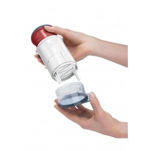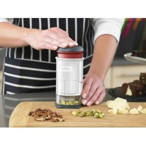 Резачката е идеална за приготвяне на малки количества продукти като чесън. лук, орехи и други. Чрез натискане на буталото резачката се заключва с натиск надолу за компактно съхранение.