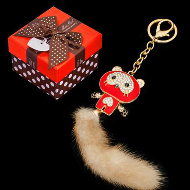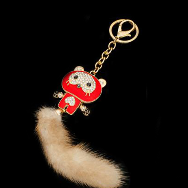 - Визията се допълва от червено мече с дълга пухена опашка,