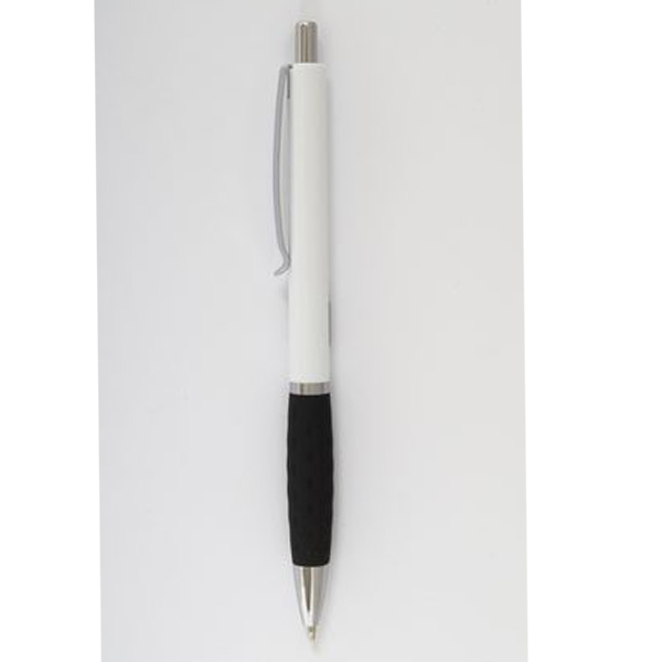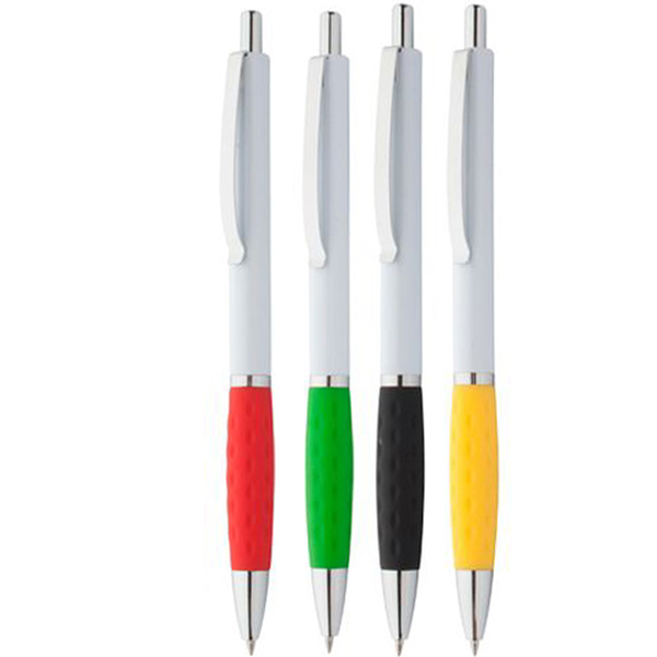 • Пластмасова химикалка с цветно гумено захващане, метален клип и ринг