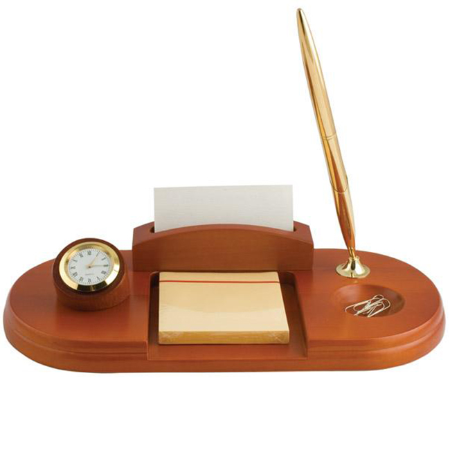 • Поставка за бюро с часовник, химикалка и място за визитки.