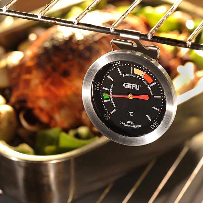 Термометърът за фурна се поставя на безопасно място при подготовката на храна, той проверява не само температурата във фурната, но и използва набор от цветове, за да покаже идеалната температура за ниска температура на готвене, печене и пържене.