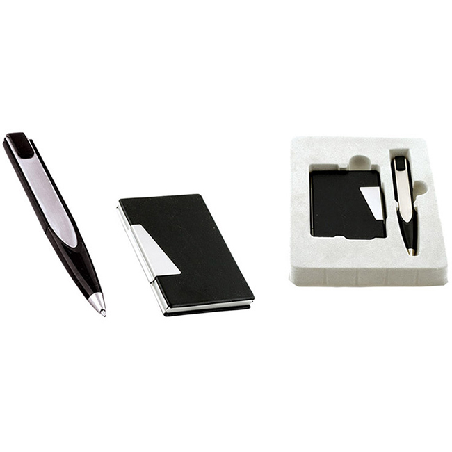 • Материал пишещи средства: пластмаса и метал. Материал визитник: еко кожа и метал.