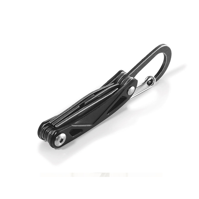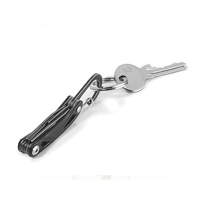• 6 функции: ключодържател, отварачка за бутилки, нож, плоска отвертка, ножичка, карабинер