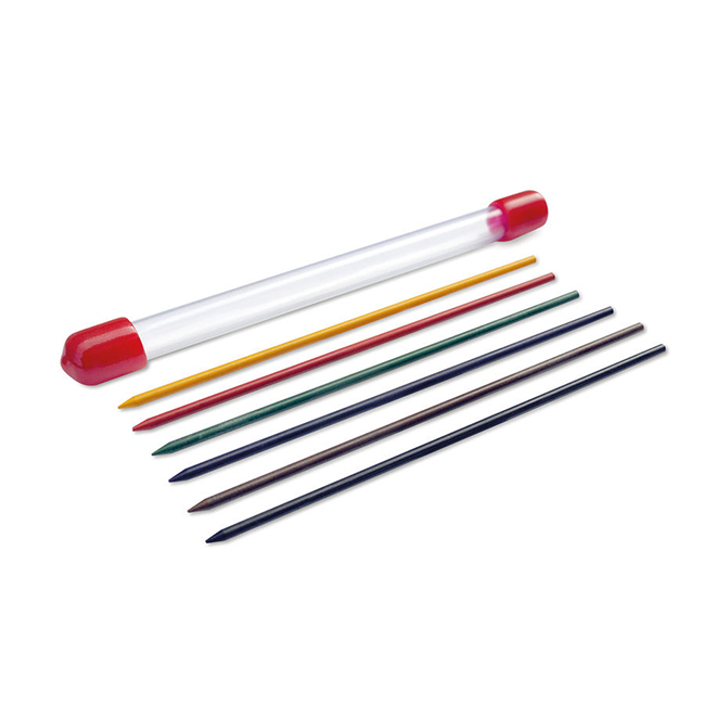 - молив със 6 сменящи се цветни графита (черен, син, кафяв, зелен, жълт, червен)