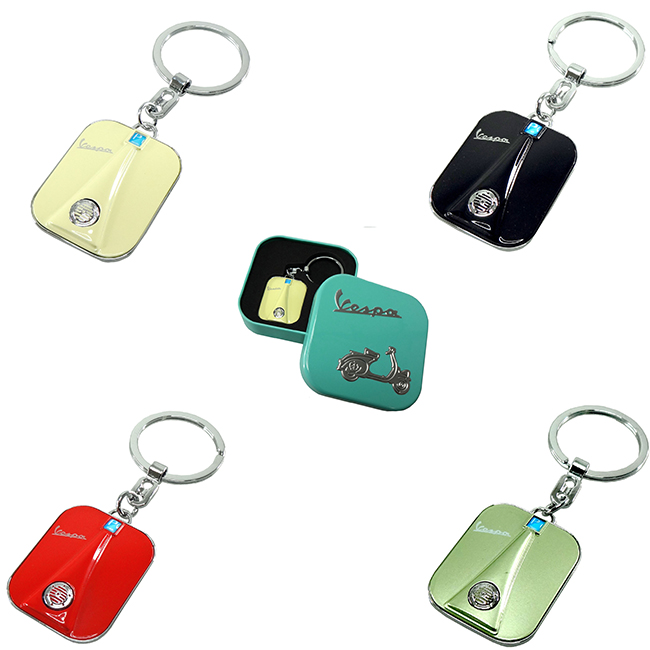• Ключодържател, вдъхновен от предния обтекател на мотопед Vespa.