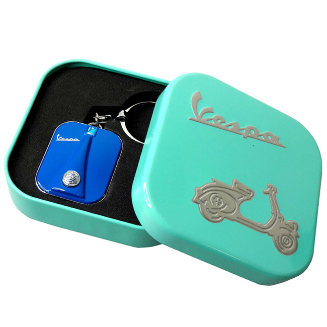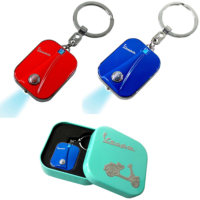 - Ключодържател, вдъхновен от предния обтекател на мотопед Vespa. С LED фенерче.