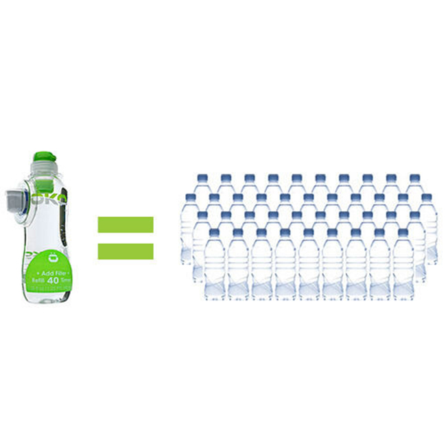 Всеки ÖKOPURE™ филтър осигурява 40 напълвания на бутилката с превъзходна вода от Вашата собствена чешма на цената на малка част от стойността на заводски бутилираната вода!