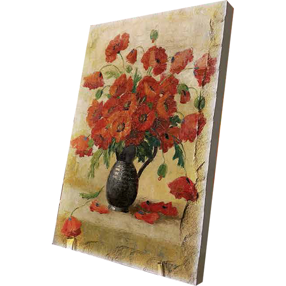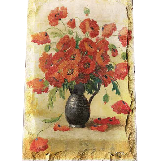 Картина върху врачански камък - 13x18 см - макове във ваза