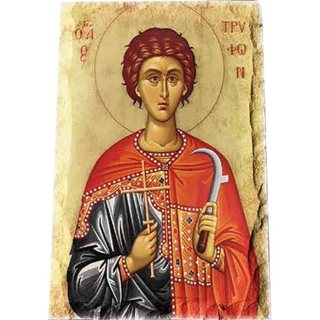 Картина върху врачански камък - 13x18 см - икона Свети Трифон
