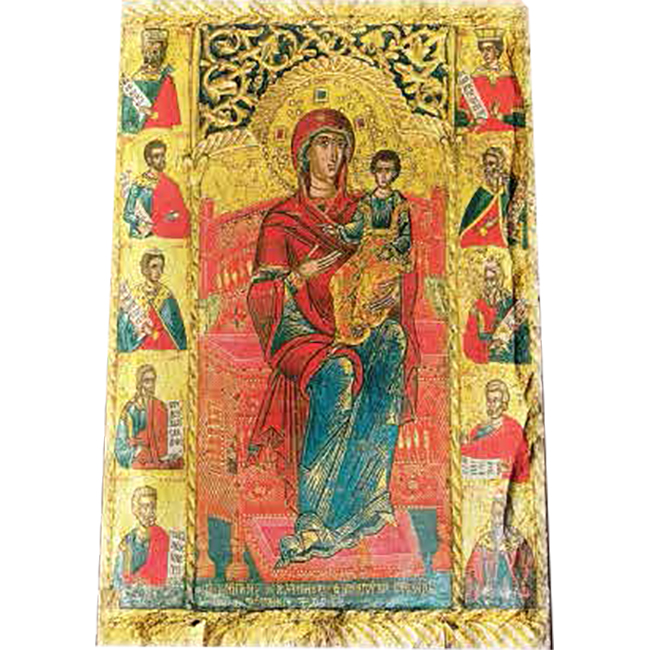Картина върху врачански камък - 13x18 см - икона Дева Мария и Младенеца
