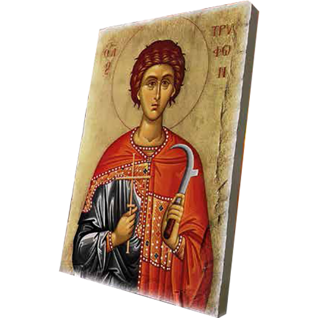 Картина върху врачански камък - 20x30 см - икона Свети Трифон