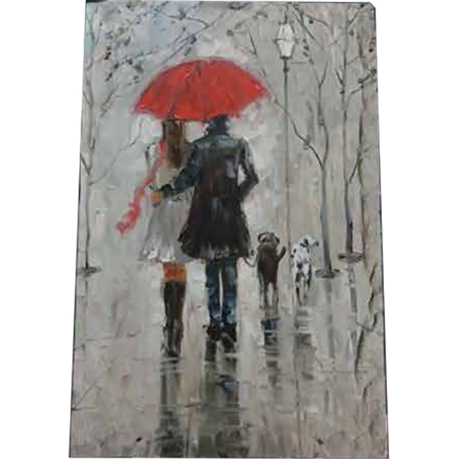 Картина върху врачански камък - 20x30 см - Разходка под дъжда