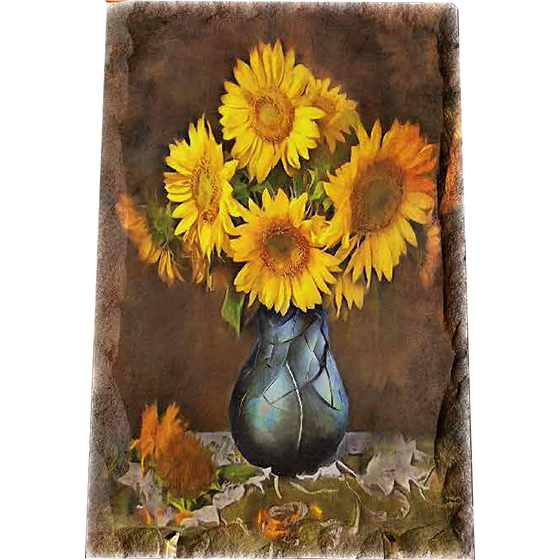 - Картина върху врачански камък - 30x45 см - слънчогледи във ваза