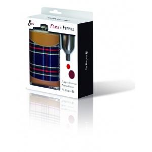 Бутилката е изработена от висококачествена стомана и е украсена с ярък печат в десен "шотландско каре".В комплект с фунийка, която позволява лесно и удобно пълнене.