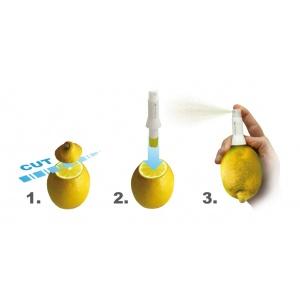 Модерен и много полезен уред за изтискване на лимон, лайм и др. Този спрей извлича пресен сок от всеки цитрусов плод. Леко размачкайте плода, за да извлечете по-лесно сок от него. Срежете му върха и с въртеливи движения завийте спрея в сърцевината му.