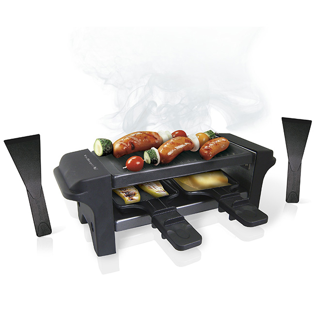 - Предварително загрейте грила и малките тигани за 3 минути. След това можете да поставите всякаква храна върху скарата и малките тигани. Можете да използвате сготвена храна или сирена/кашкавали – загрейте всичко за 3-4 минути и след това извадете тавичките.